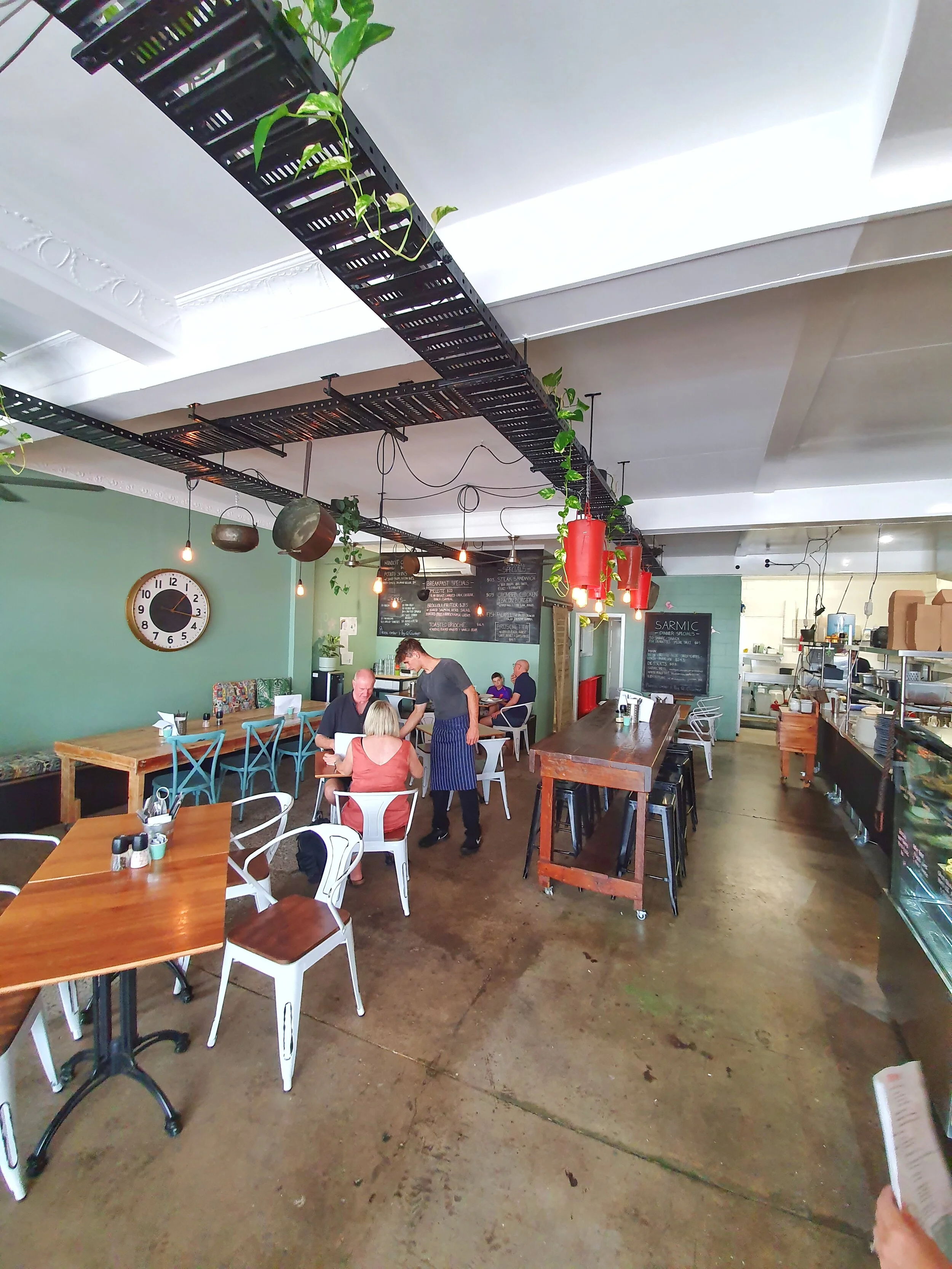 Having been a favourite of Bulimba locals, Sarmic Cafe moved to a bigger space on Wynnum Road Morningside, (formerly occupied by Southside Tea Room) in 2019. The decor is rustic and industrial, with some quirky decorative and repurposed pieces adding to the character of the place.
